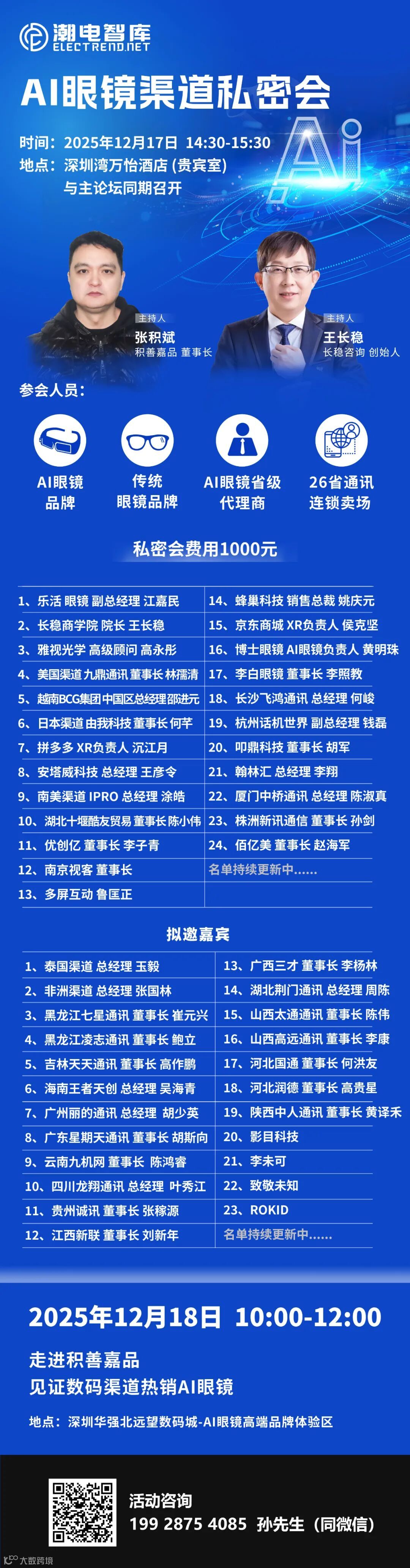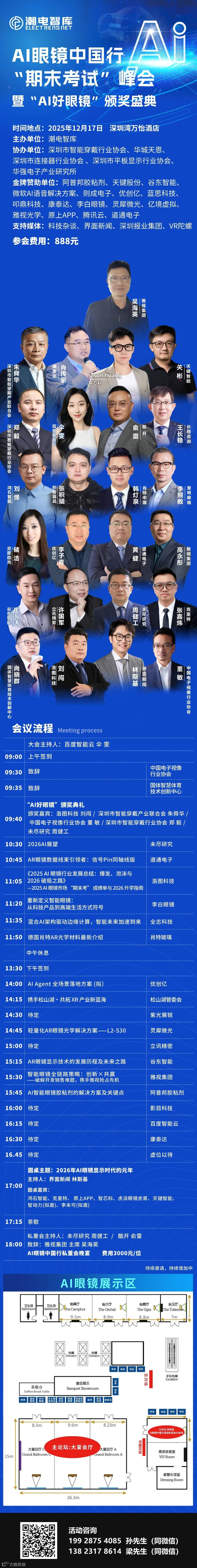 结合参会者的意见诉求,峰会组委会决定在原有议程不变的前提下,12月17日开设新的专场私密会,人员由AI眼镜品牌、传统眼镜品牌、AI眼镜省级代理商、26省通讯连锁卖场组成,旨在畅通产业链最后关键一公里,全面开辟终端落地通道。