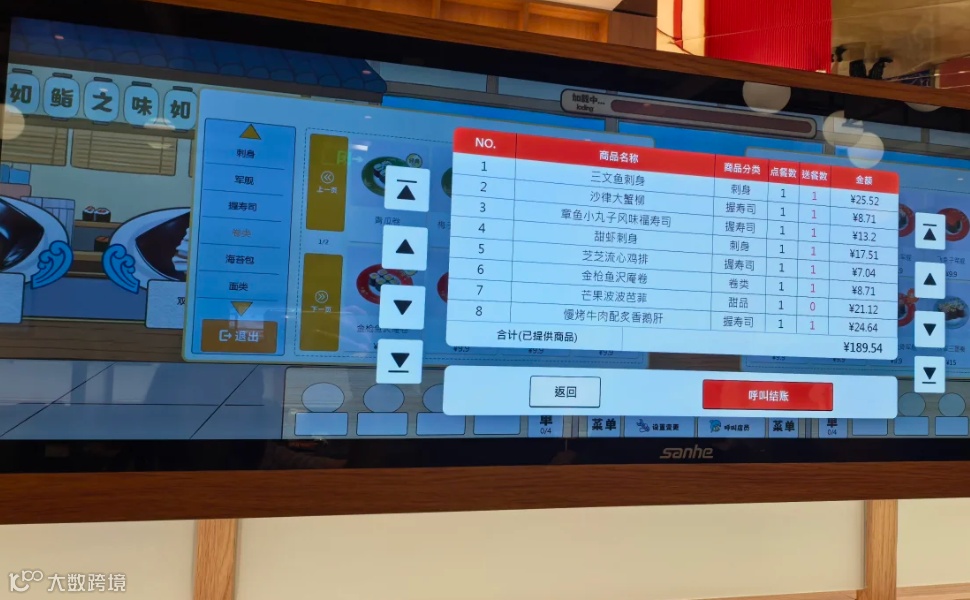 消费者通过屏幕自助点单,并随手取用传送带上的餐品;