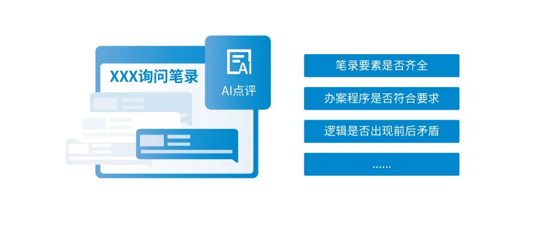 AI笔录系统的“智能点评”功能,能够从多个维度对笔录成果进行分析,包括笔录中是否遗漏了关键信息,是否存在逻辑矛盾,是否符合执法办案程序要求、还有哪些证据需要补充等,从专业的视角全面提升笔录文书质效。