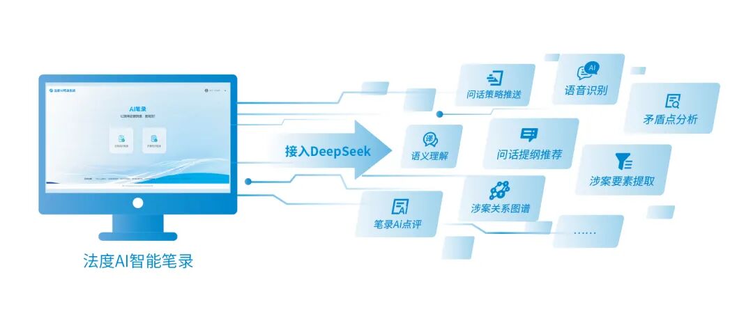 法度Ai智能笔录全面深度对接DeepSeek,融合笔录业务数据、执法办案知识库以及公安办案业务数据,利用大模型赋能和大数据技术,实现智能问话,充分挖掘笔录内容,融合构建特定业务场景的分析,法度Ai智能笔录系统为公安基层执法办案质效提升提供强有力的助力!