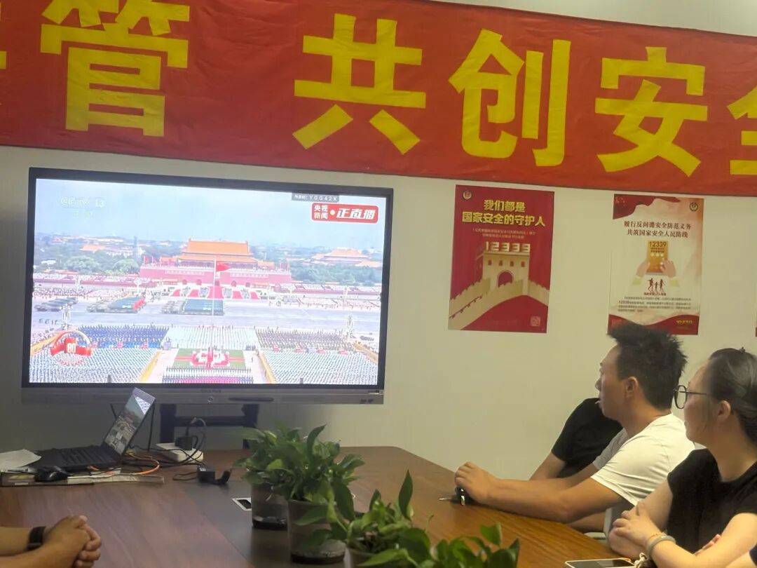 9月3日上午,纪念中国人民抗日战争暨世界反法西斯战争胜利80周年阅兵仪式在北京隆重举行。上海迅由国际物流有限公司精心组织员工收看阅兵盛况,将观看阅兵作为一次深刻的爱国主义教育和职业精神洗礼。