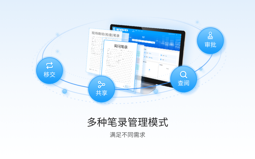 依据办案需要提供多途径的笔录管理模式,支持笔录文书的授权共享和移交。办案人员可将笔录文书授权共享供其他同事查阅;也可经领导审批后,移交至其他同事办理,接收的办理人员持有该份笔录文书的所有操作权限。