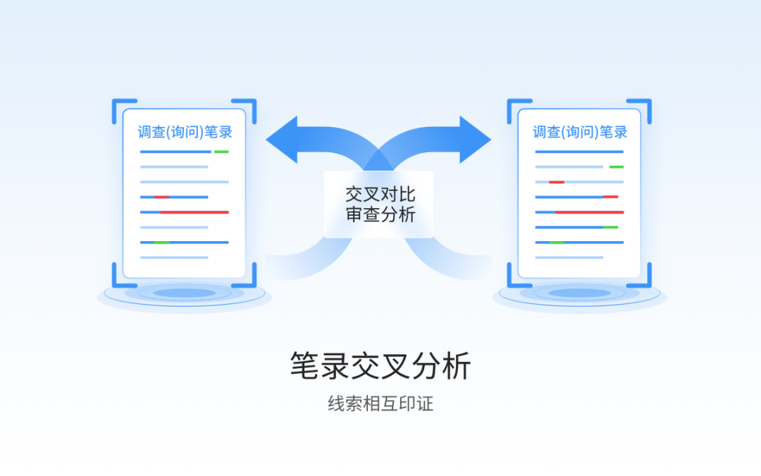 可对多份不同问话对象的笔录问答内容,回答中提及的关键词进行交叉比对、全面审查分析,帮助办案人员辨别和印证被询问人反馈内容的真实性,以确保调查的准确性和可靠性。