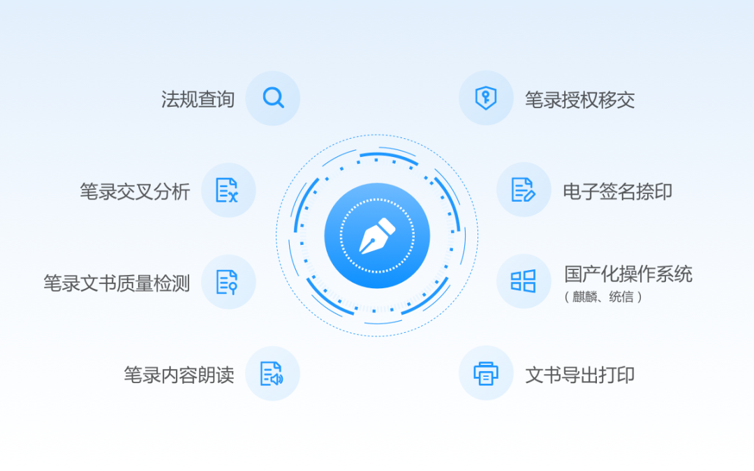 系统还提供有在线法规查询、笔录文书质量检测、笔录交叉分析、笔录授权移交、笔录内容朗读、文书导出打印等功能,并可无缝对接电子签名板进行文书的电子签名捺印,同时支持银河麒麟、统信UOS国产化桌面操作系统,为办案人员提供更加便捷、高效的执法办案工具。
