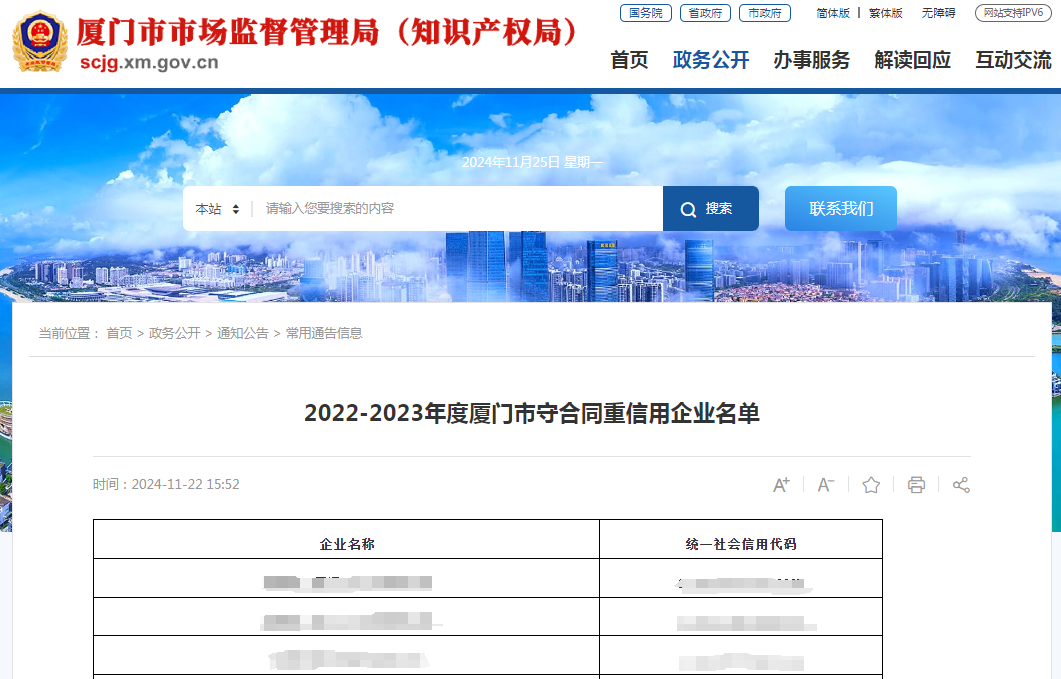 近日,厦门市市场监督管理局发布关于“2022-2023年度厦门市守合同重信用企业名单”的公告,厦门市法度信息科技有限公司榜上有名,获评“2022-2023年度厦门市守合同重信用企业”。