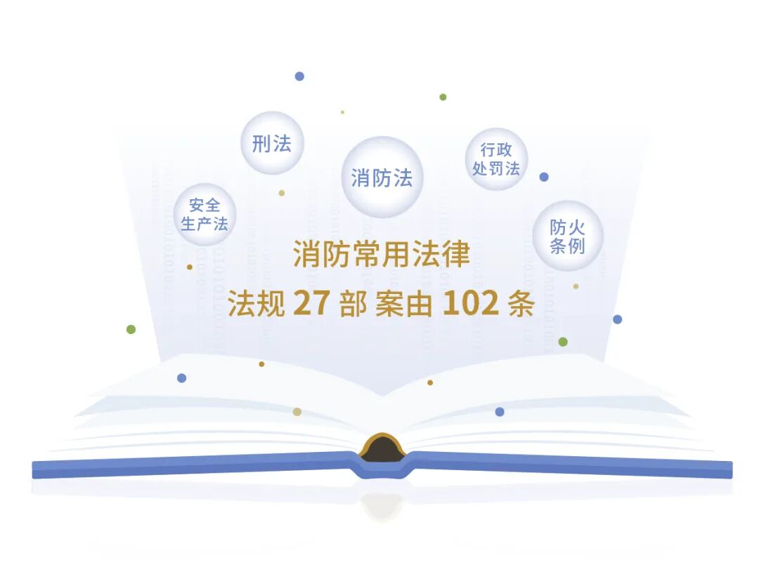 系统整合刑法、安全生产法、消防法、防火条例、治安管理处罚法、行政法等消防常用法律法规27部,梳理消防案由102条,执法工作人员可所需查阅使用,确保执法依据引用不错漏。