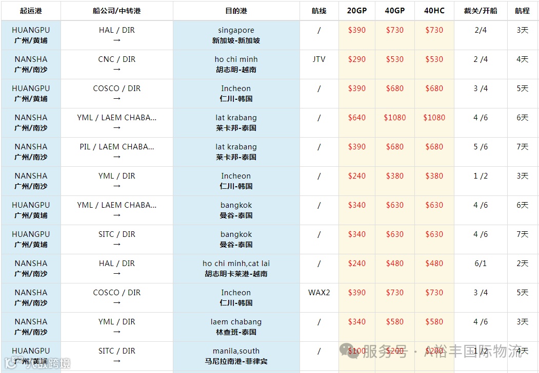 5、广州港起运国际海运整柜报价