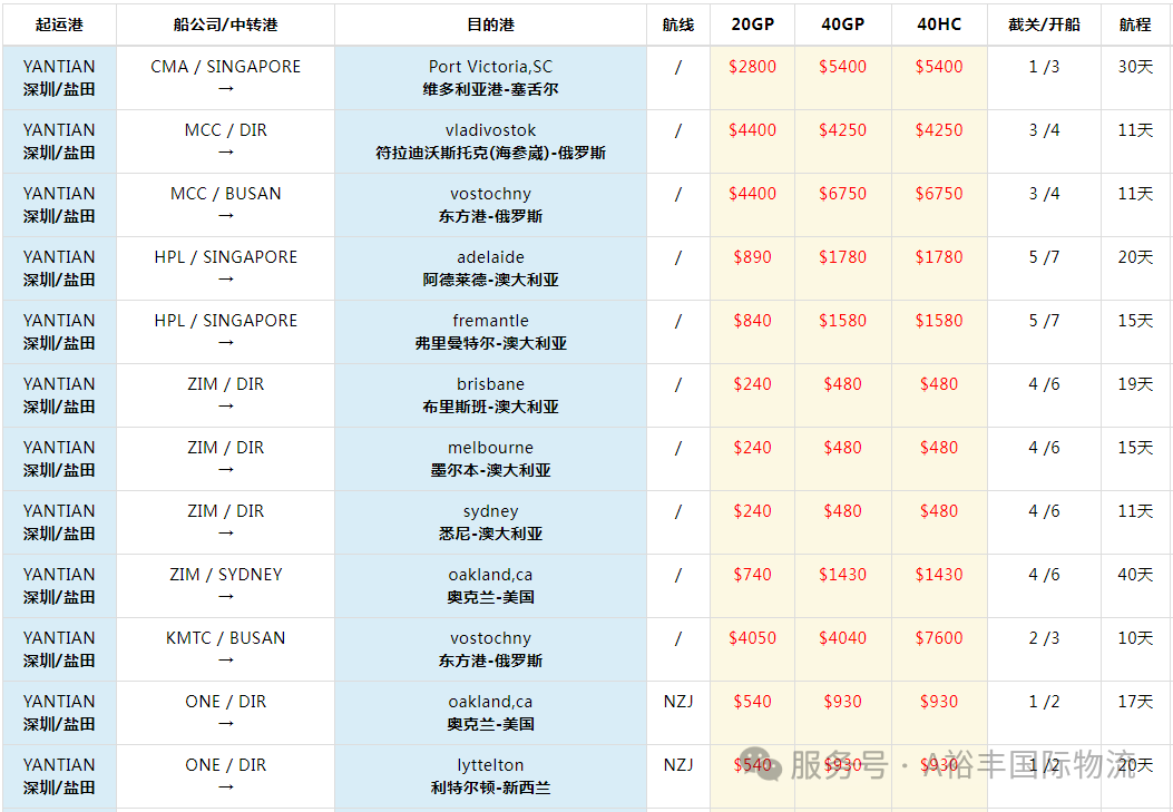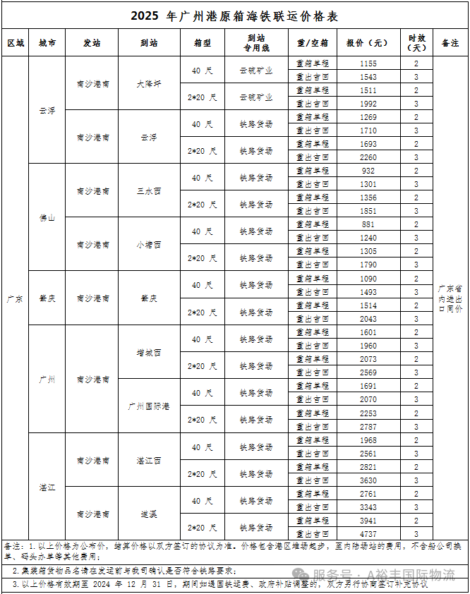 4、广州南沙港南站至广东省内各站点海铁联运价格表