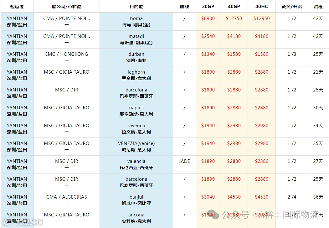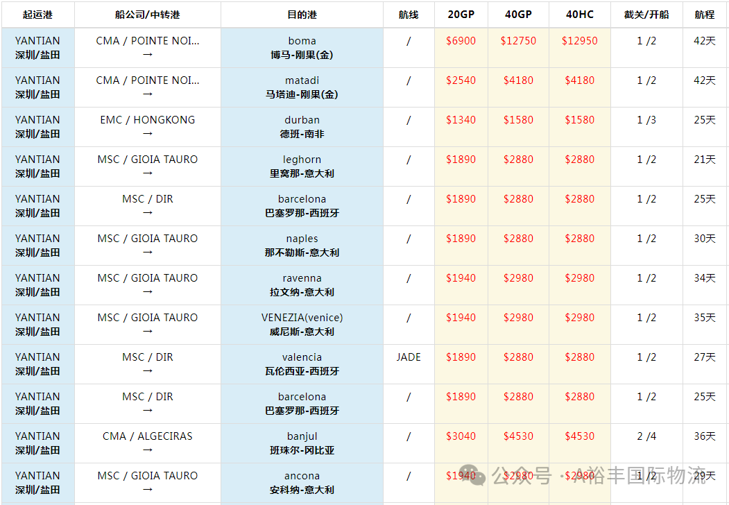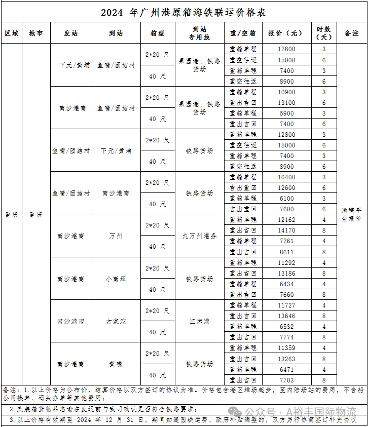 4、广州南沙港南站至重庆各站点海铁联运价格表
