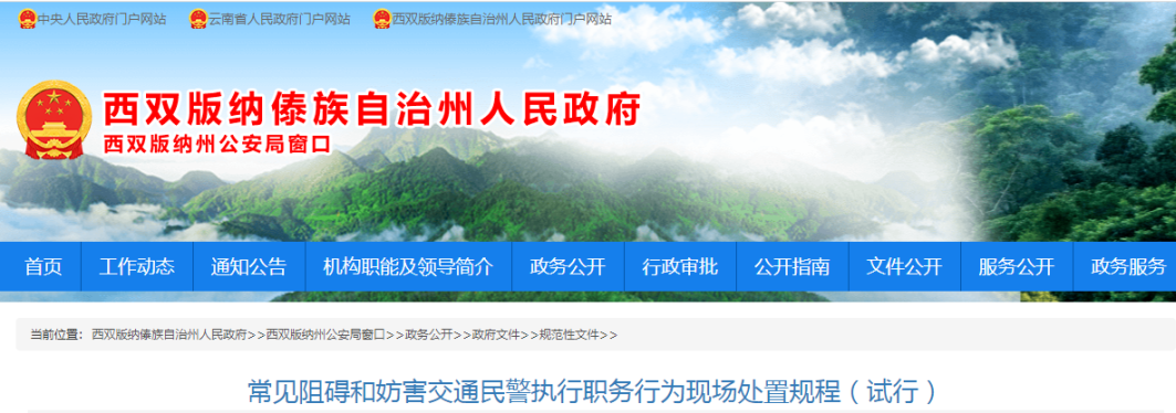 编者按:这是在西双版纳傣族自治州人民政府信息公开发布平台发现的一个关于交警执法现场处置的处置规程,读后感觉这要远比其它的一些规程要规范而实用的多。这套规程不仅仅是适合交警收藏参考,其它警种同样适用!建议基层一线民警收藏并认真阅读,必有收益!
