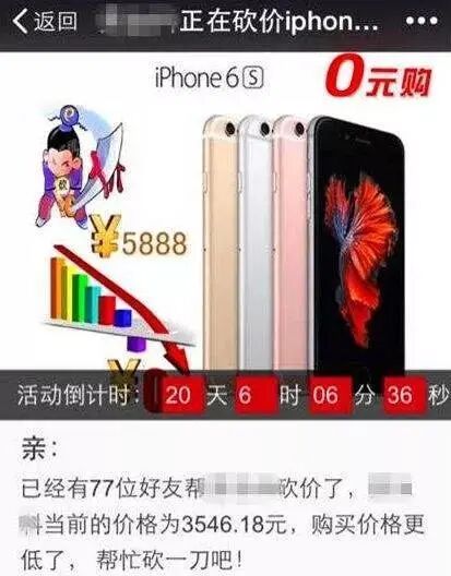 从几元的零食到几千元的手机、万元的相机,都有号称“只要邀请朋友在链接页面中帮忙‘砍价’至0元,即可免费获得该产品”。但是,许多网友却反映砍价后无法成功购买。