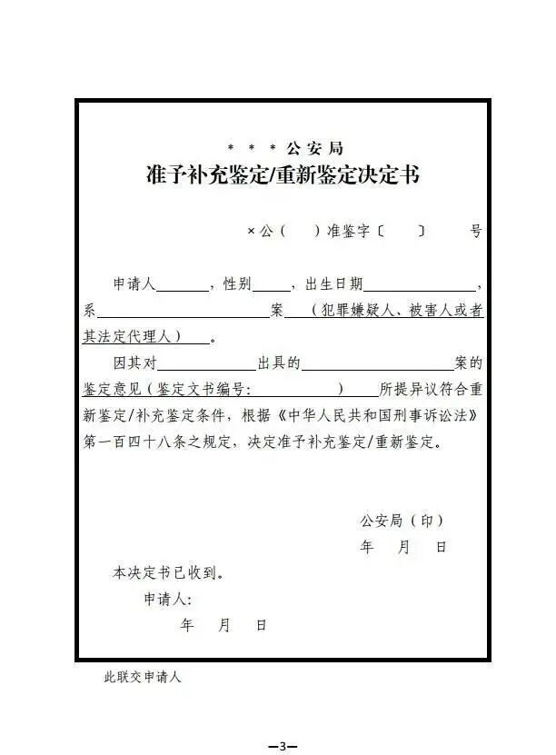 2.《准予补充鉴定/重新鉴定决定书》