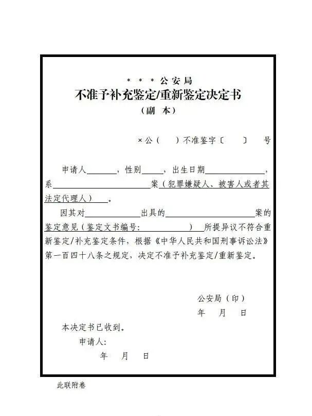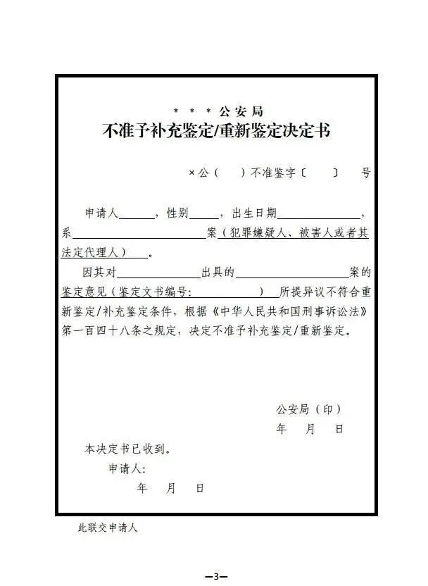 3.《不准予补充鉴定/重新鉴定决定书》