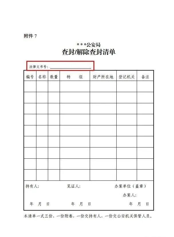 为了防止随意查封、扣押,在《扣押清单》《查封/解除查封清单》中增加了“法律文书号”。