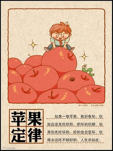 如果一堆苹果,有好有坏,你就应该先吃好的,把坏的扔掉,如果你先吃坏的,好的也会变坏,你将永远吃不到好的,人生亦如此。