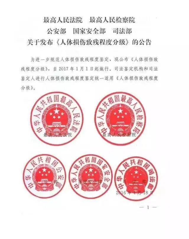 最高人民法院、最高人民检察院、公安部、国家安全部、司法部发布 人体损伤程度鉴定标准