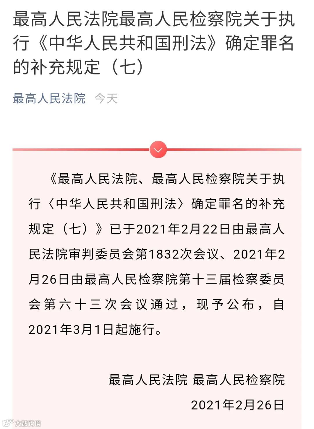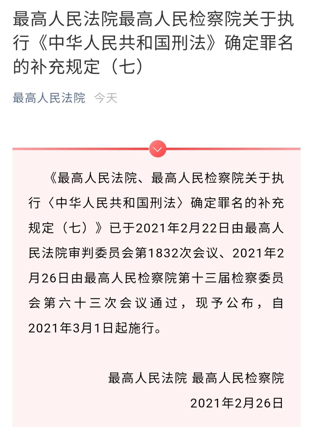 早前,第十三届全国人民代表大会常务委员会第二十四次会议通过了《中华人民共和国刑法修正案(十一)》,3月1日起正式施行,修正案将刑法第二百七十七条第五款修改为:“暴力袭击正在依法执行职务的人民警察的,处三年以下有期徒刑、拘役或者管制;使用枪支、管制刀具,或者以驾驶机动车撞击等手段,严重危及其人身安全的,处三年以上七年以下有期徒刑。”这是首次对袭警单独设置法定刑,最高刑期由三年变七年。