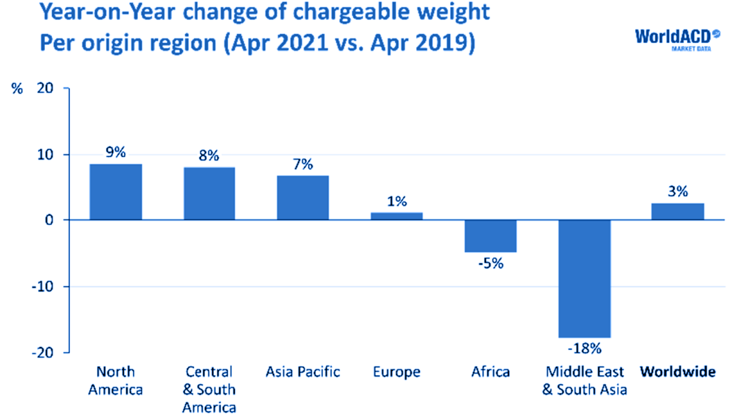 Cargo tonne km (CTKs) flown rise 4.4% above pre-crisis March 2019 level