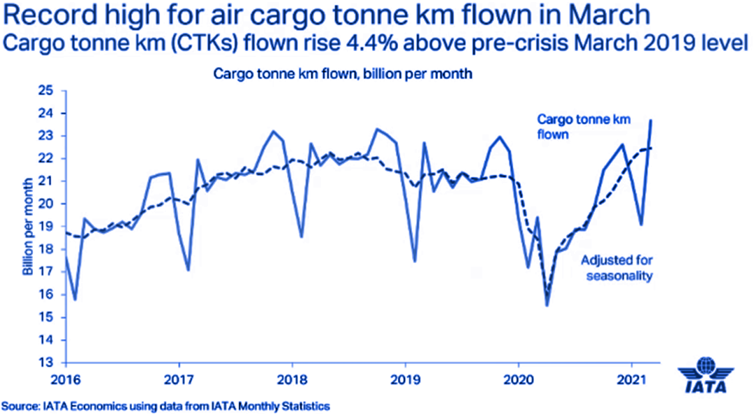 // RECORD HIGH FOR AIR CARGO TONNE KM FLOWN IN MARCH