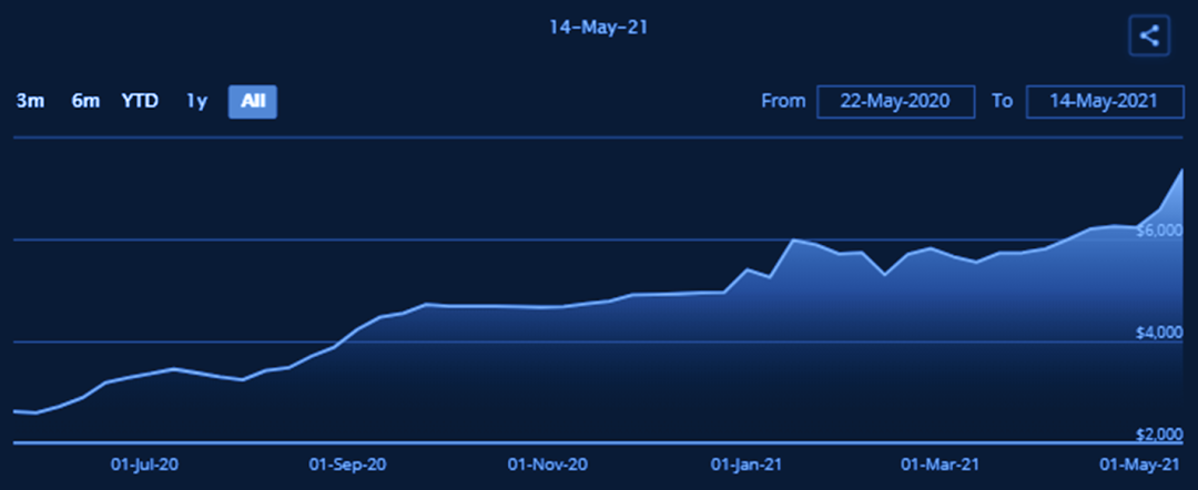 B. The rate for a 40-ft. container from Shanghai to Rotterdam rose to $10,174, 3.1% higher than a week ago, 485% above a year ago and the highest in records going back to 2011. (Source: Drewry World Container Index)