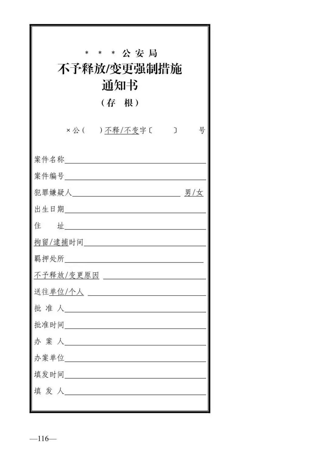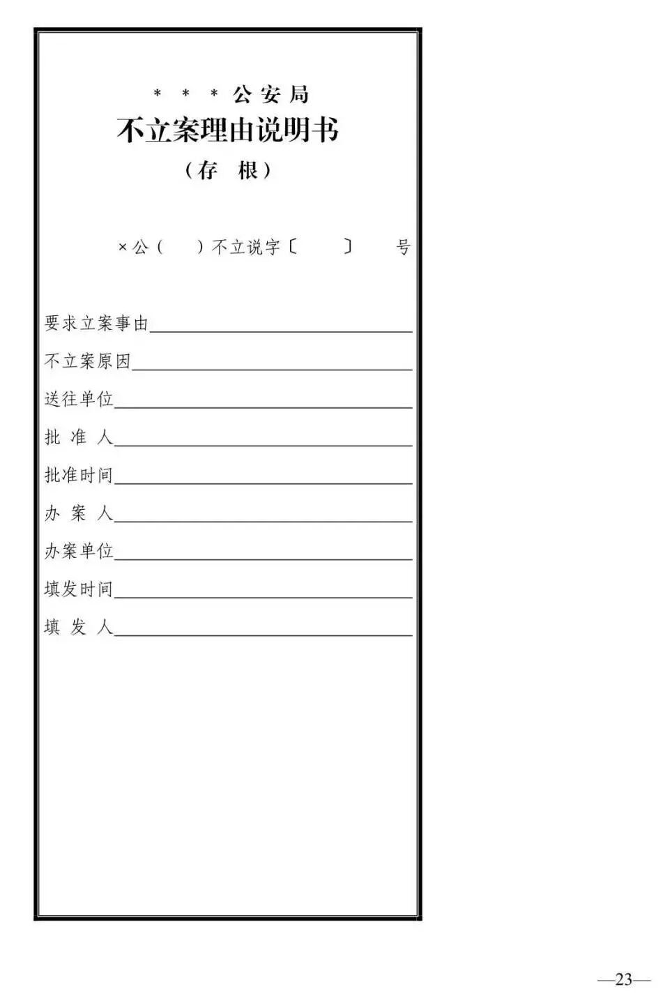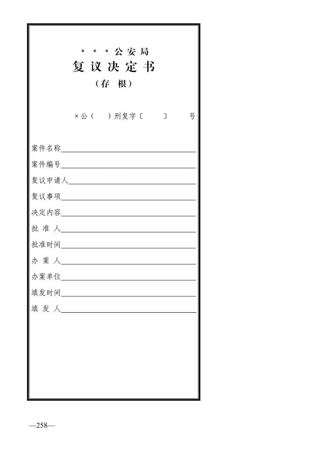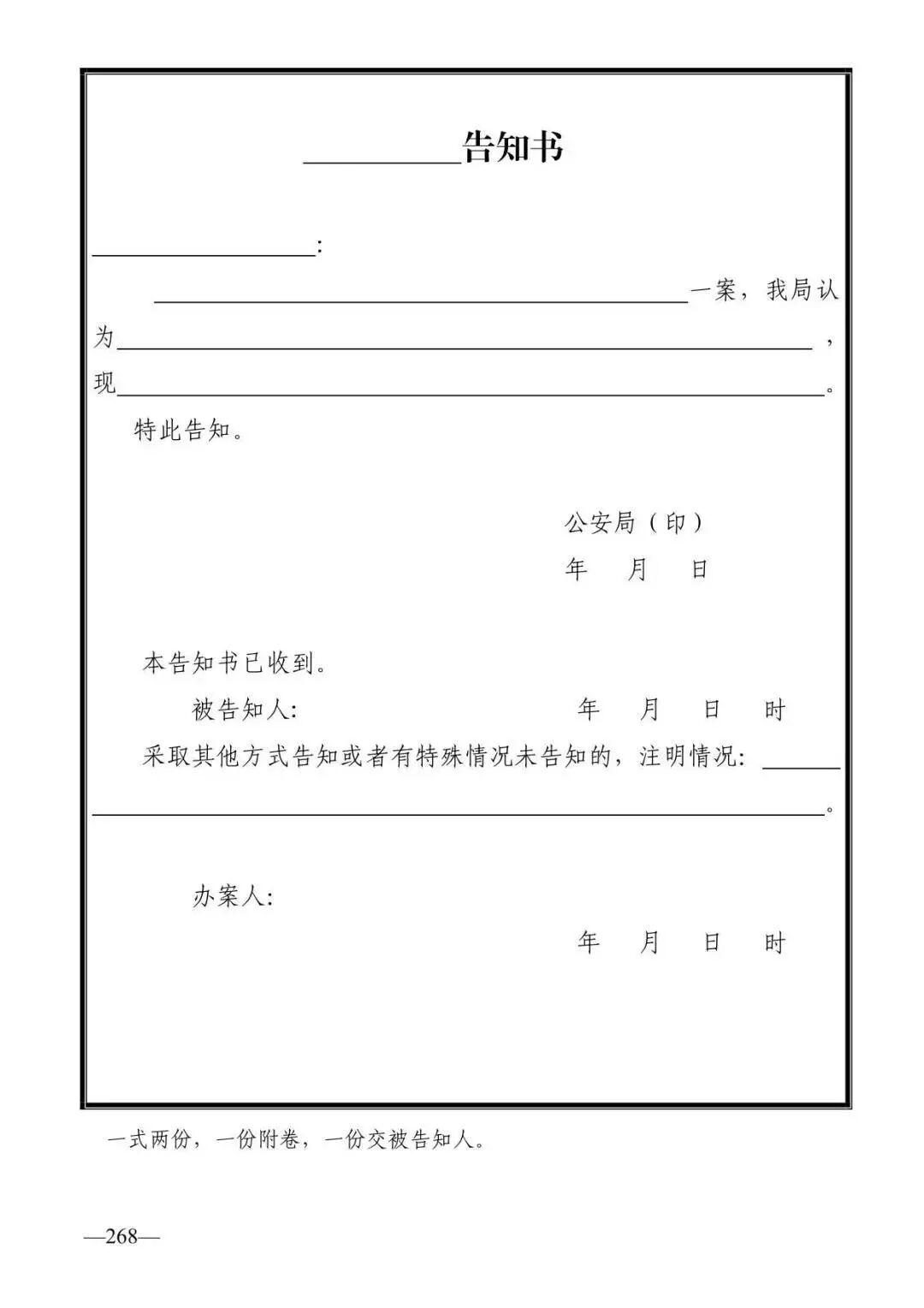 (三)正式印制时,对标明式样顺序号、“印”、“公安局印”以及注明应当含内容的文字不要印上。根据办案实际需要,凡是内容不固定的叙述型文书,如《呈请立案报告书》、《提请批准逮捕书》、《起诉意见书》、《要求复议意见书》、《提请复议意见书》等,可只印单位、文书名称、编号等开头的内容,其他内容参照制作和填写要求中注明的要求,在拟稿后书写或打印。笔录式文书可只印第一页或上半部分,其他内容参照制作和填写要求书写。