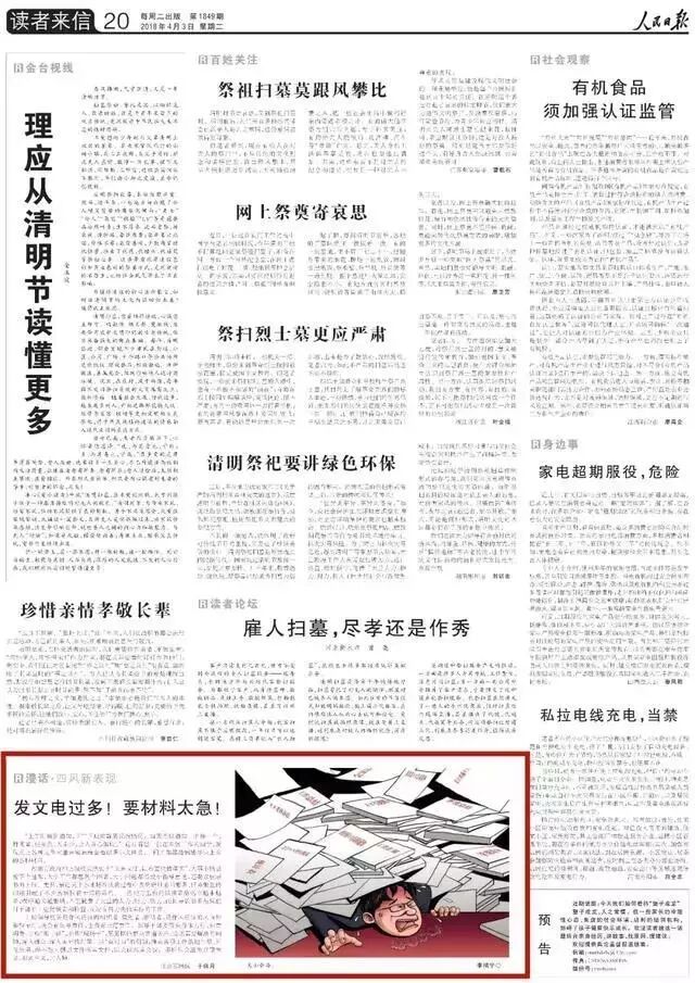 “上午刚接到通知,下午下班前就要反馈情况。每天类似通知一个接一个,时间紧、任务急、人手少,让人身心俱疲。” 近日看望一位在乡镇工作的同学,发现桌上各种文件夹里密密麻麻套着很多小文件夹,一问才知都是需要尽快上报的各种材料。
