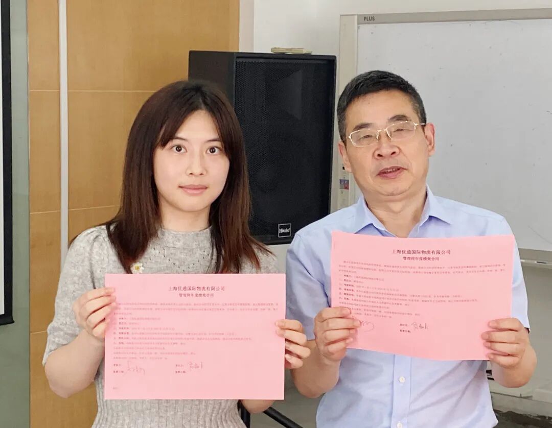 2023年05月26日位于优通国际物流二楼会议室举行“绩效合同”签署暨“管理提升”项目结项会。本次会议邀请优通国际董事长朱健林先生、总裁姜玮先生、陈梅女士,特邀咨询团队的咨询师以及优通国际物流管理层共同参加。