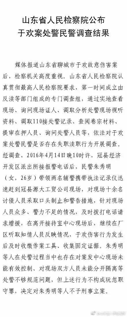 山东省人民检察院今日发布,“存在处警不够规范问题,但不构成玩忽职守罪,不予刑事立案。”