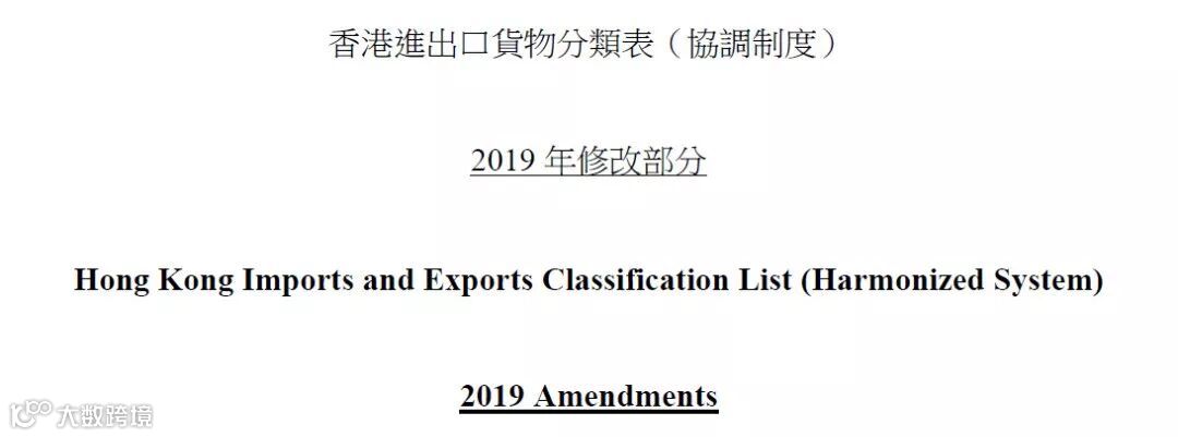 香港海关刚刚公布新版商品HS编码,2019年生效