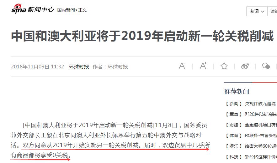 2019年开始我国取消澳大利亚所有关税!而最为回礼,从2019年1月1日起,我国所有进入澳大利亚的中国商品的关税将被取消!