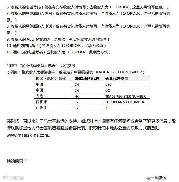 解答十: 船公司不对收、发货人代码进行校对。发货人或订舱代理有责任在“船运指示”中提交准确的收、发货人代码。中国海关发布了《企业代码类型汇总表》供企业参考,可根据表中国家或地区的索引完成企业代码申报。