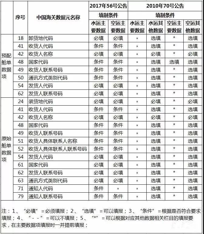 届时,水运、空运舱单数据项传输要求变更,调整的预报舱单数据项如下: