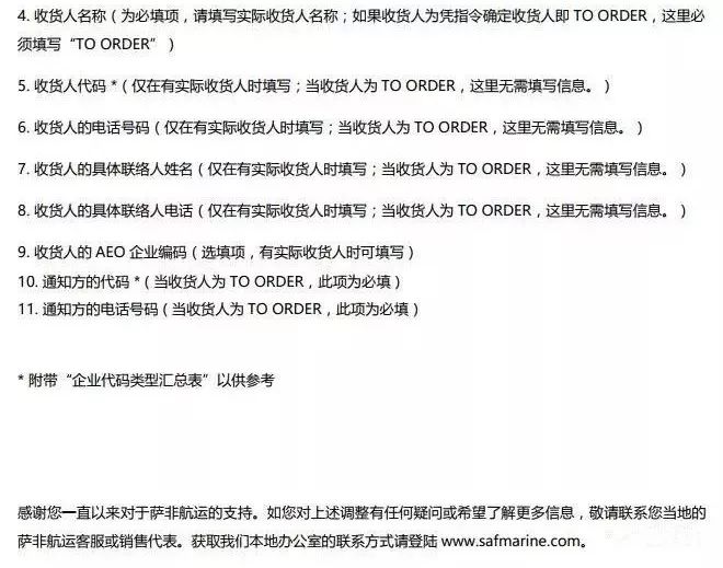 问题九:请问针对舱单规定调整后增加的数据项,客户如何将数据信息提交给萨非航运?