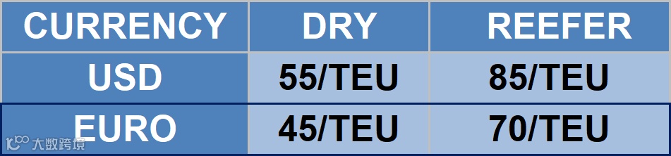 适用港口:上海、宁波、天津、青岛、大连(包括内支线货物)