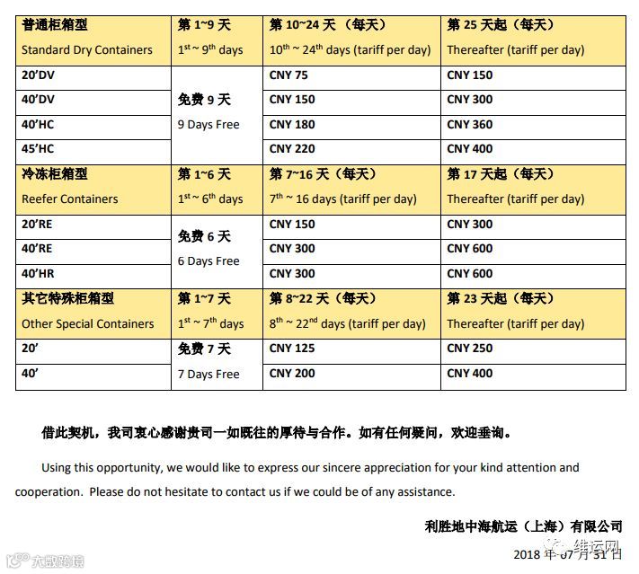 尊敬的客户:我司将对自以下港口出口的货物(包括内支线货物)的“集装箱滞箱费”进行调整。