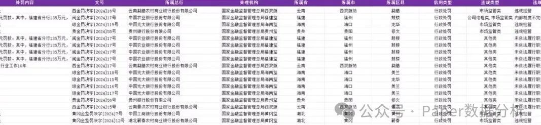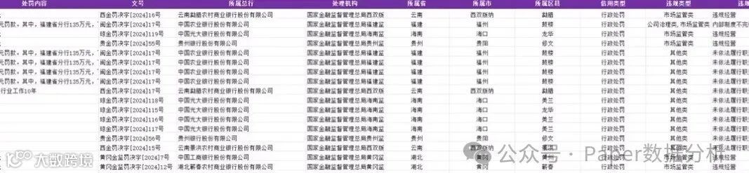数据名称:中国银保监行政处罚信息数据、国家金融监管总局行政处罚数据、银行处罚数据