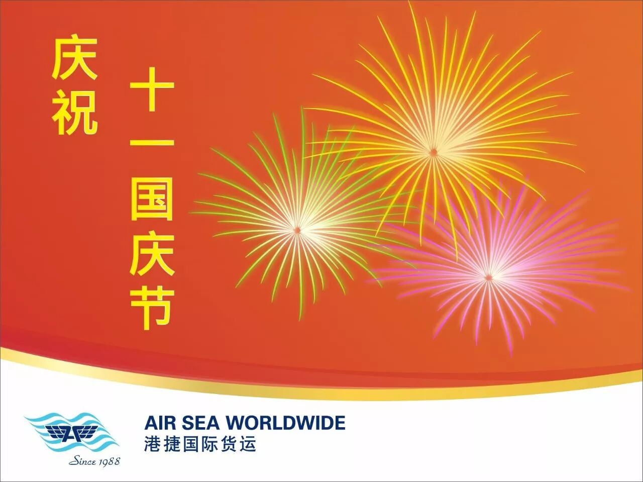 导读:港捷国际货运祝您十一国庆节快乐!欢迎您随时登入我司网站 www.airseaworldwide.com,联系我们当地的分公司。我们热切期待为您服务。谢谢。