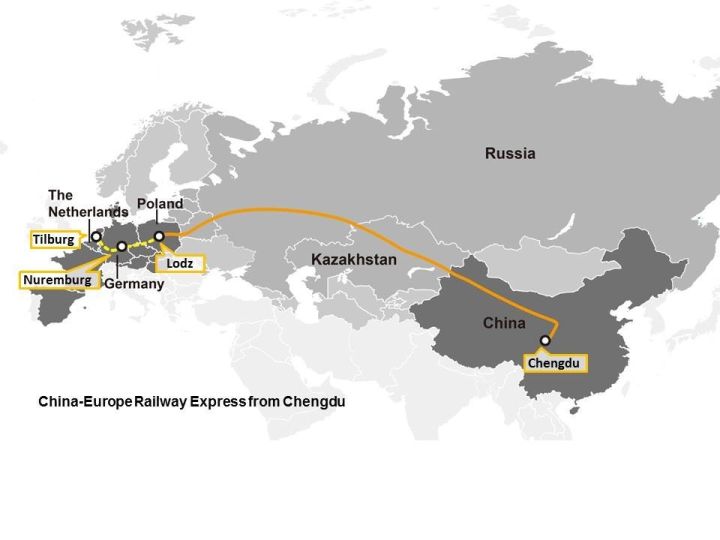 成都 - 阿拉山口 - 哈萨克斯坦 - 俄罗斯 - 白俄罗斯 - 波兰罗兹