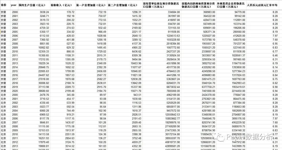 原始数据格式为:excel格式(2000-2020年)
