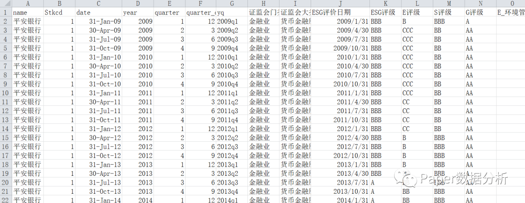 华证ESG评级2009-2022一季度包括综合评级和E、S、G三个分项评级华证数据在2022年一季度更新了评级体系,为了增加可比性并对前期数据进行调整,此为调整后最新数据