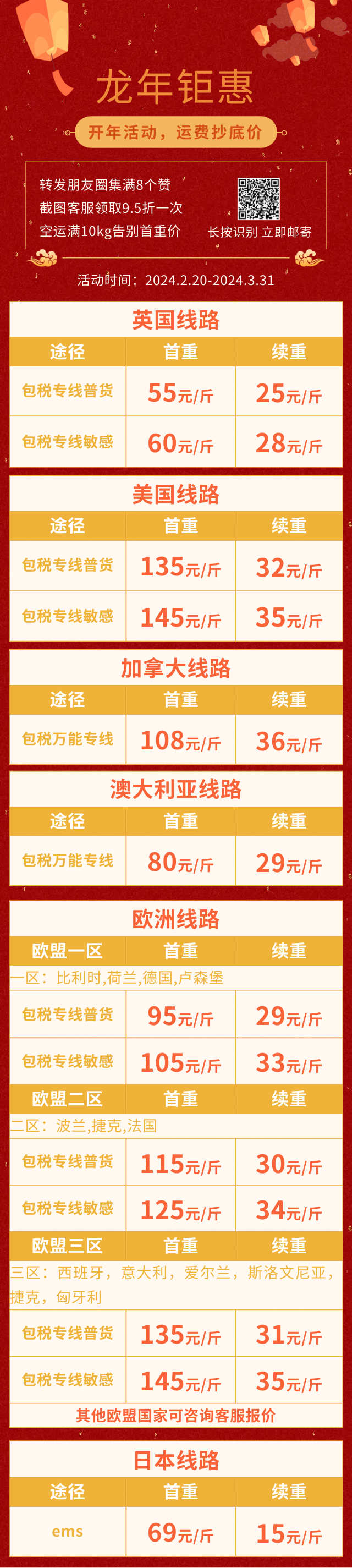 邮寄满10KG免首重价!长按图片保存转发朋友圈领95折!