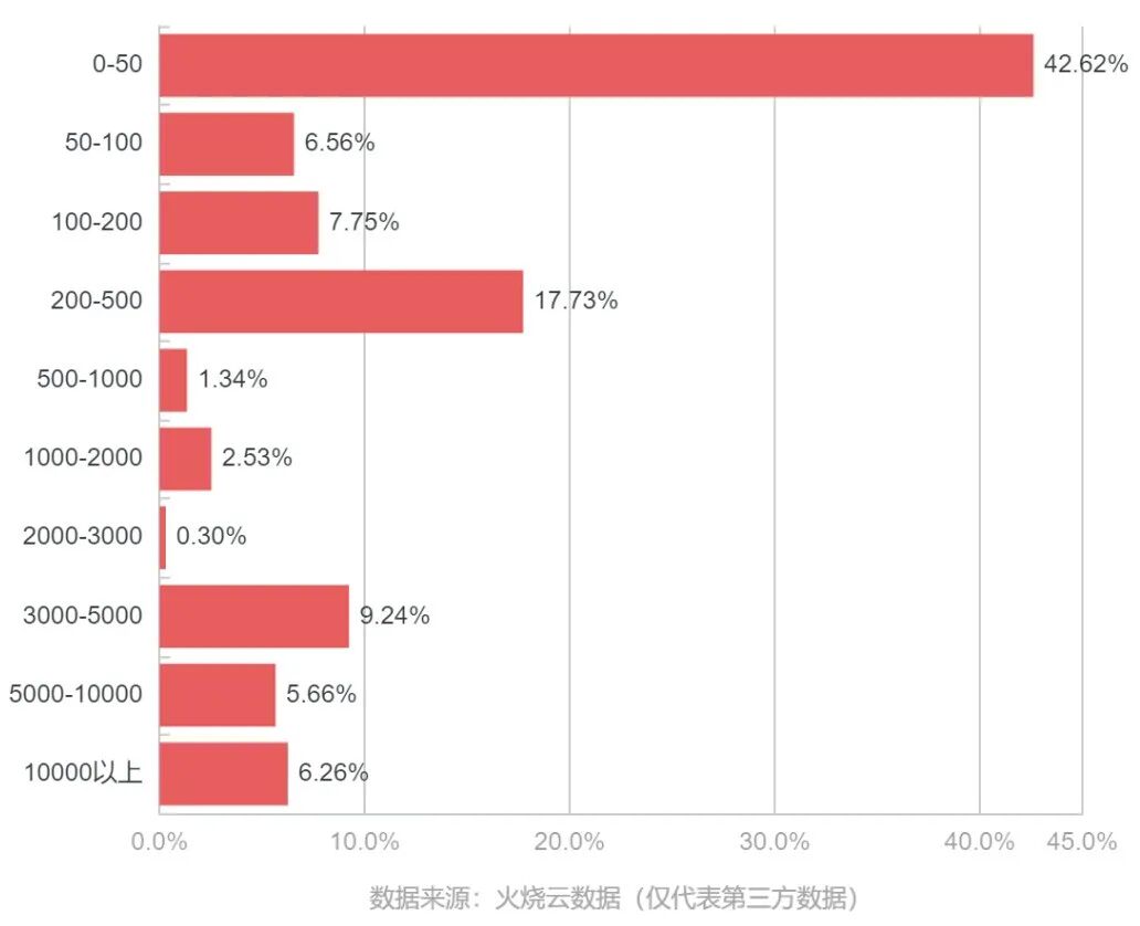 《黑神话:悟空》相关话题的蓝链带货商品客单价分布