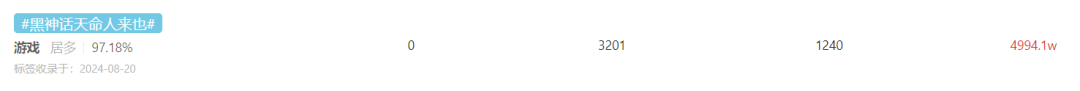 8月20日,黑神话悟空正式上线,游戏声量也进入高峰期,日曝光数以亿计。