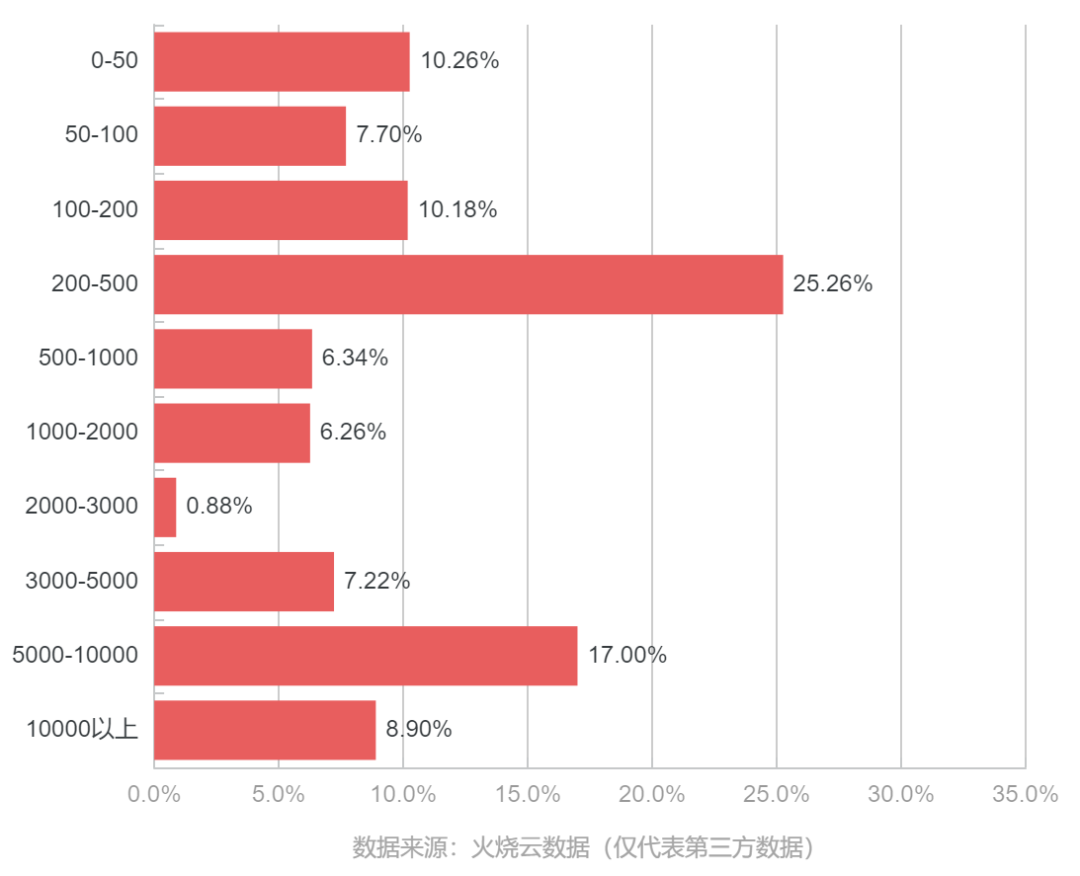 《黑神话:悟空》相关话题的直播带货商品客单价分布