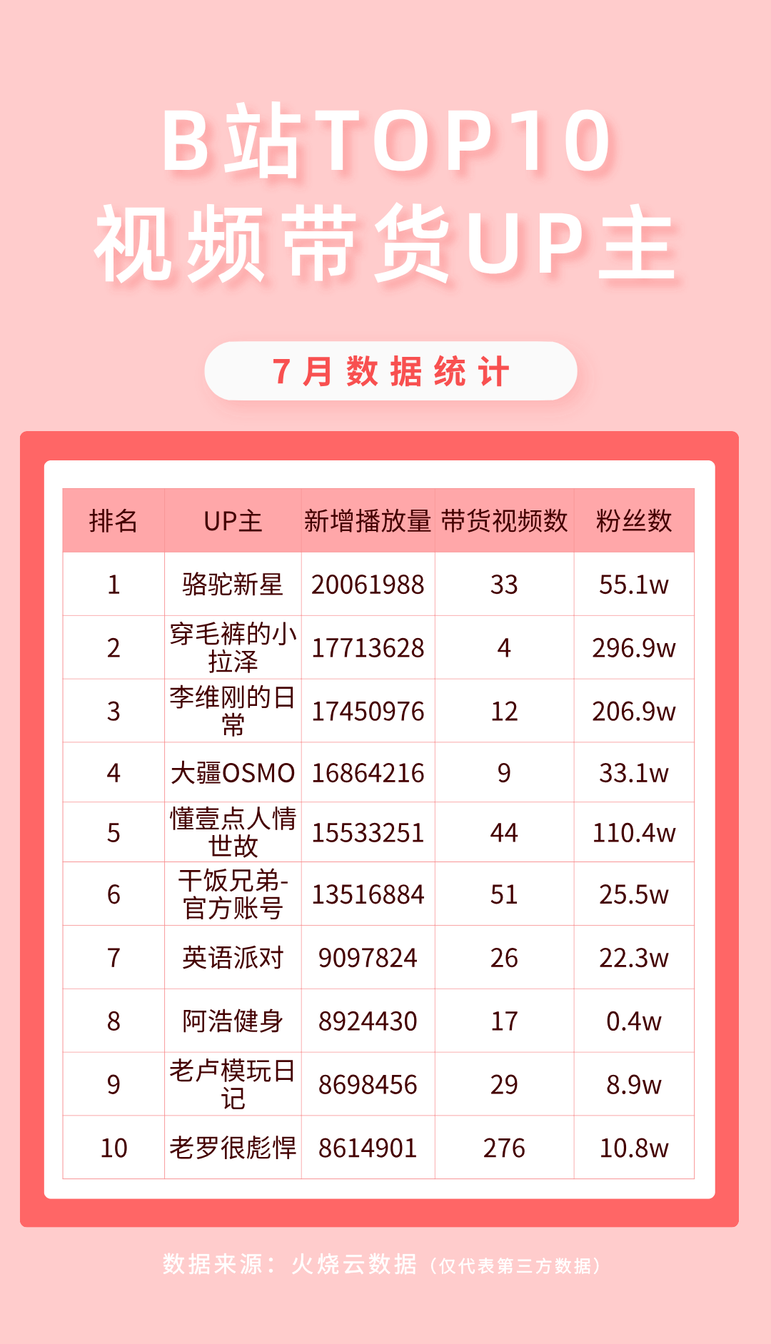 导读:7月B站带货视频共11.7w条,0-200元商品大幅增长