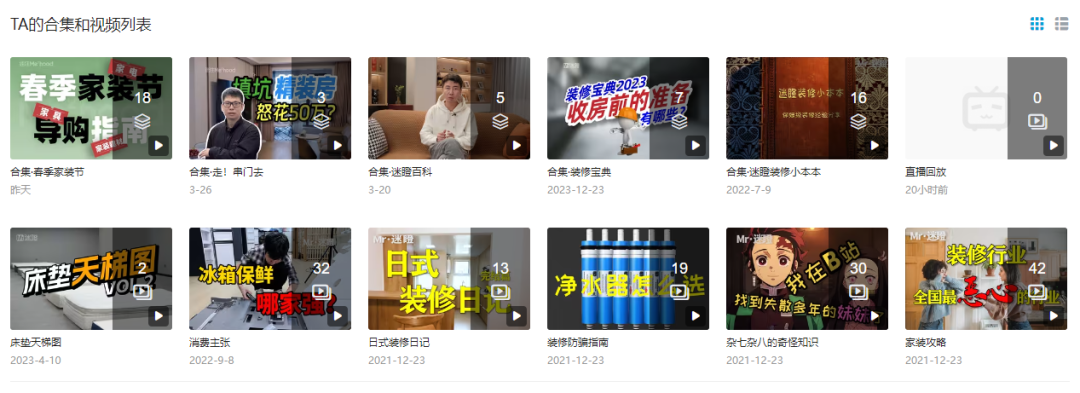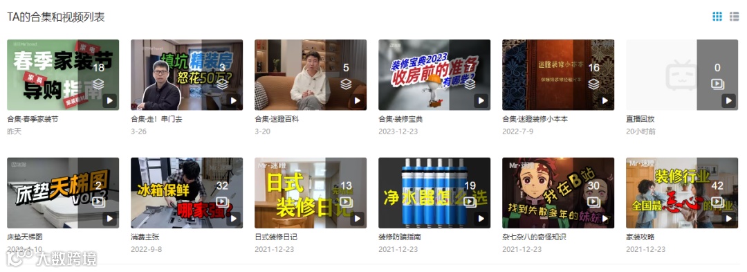 还有一些UP主正在尝试和迷瞪不太一样的路线,例如家装爆改。