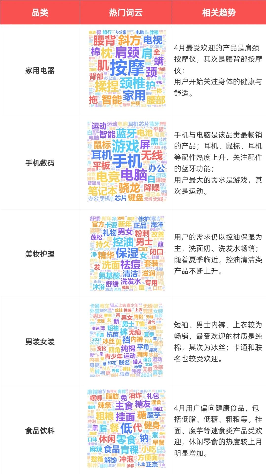 4月TOP3带货品牌是「妙界」「马登」「食觅司」,主推产品分别是按摩仪、服装、食品。