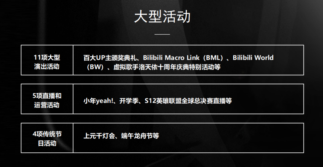 最后要说的是B站的大型活动,这里我们需要强调一个点:对于品牌来说,大型活动营销是一次关键性品牌战役。