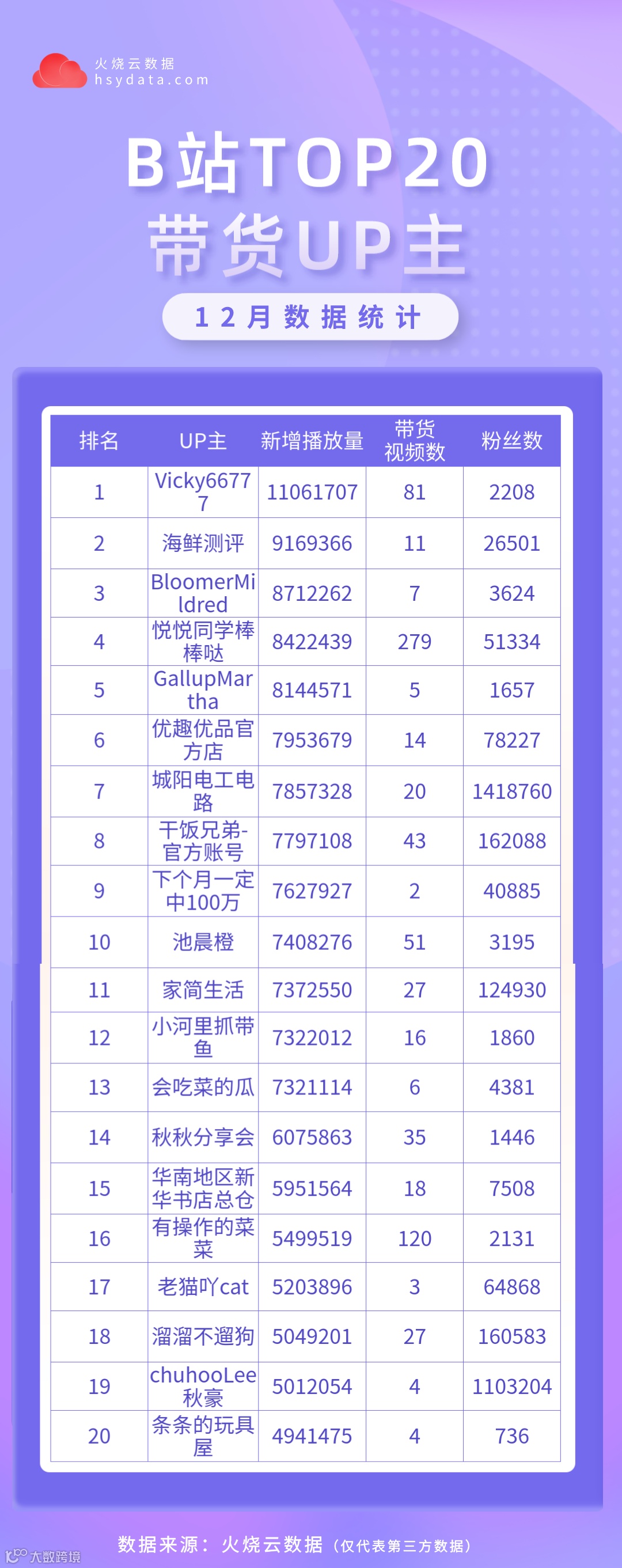 火烧云数据「12月B站带货月度报告」特此呈上,为大家2024开年的带货方向提供参考。