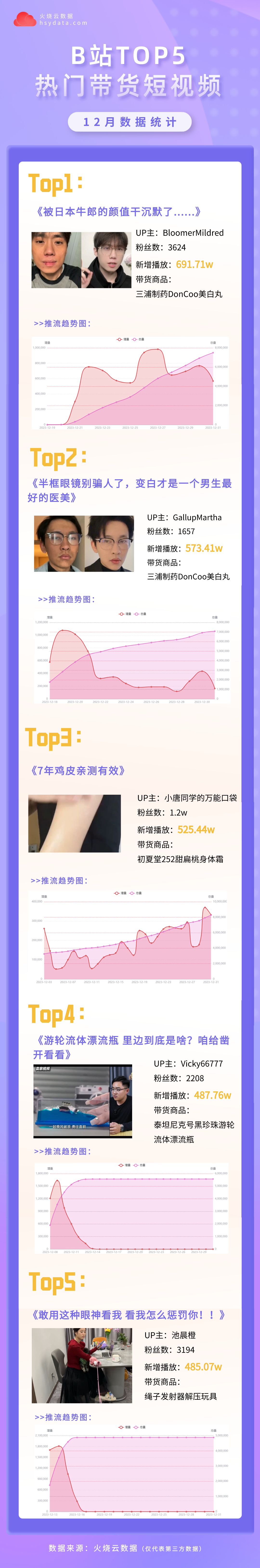 * 新增播放数:蓝链带货视频12月份的总播放,即12月份新增播放量;仅计算内容与带货商品关联性较强的视频。